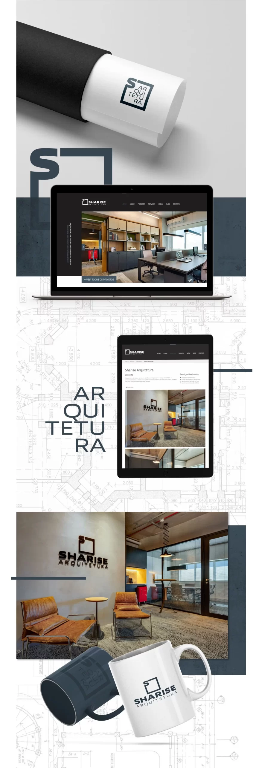 O primeiro passo foi o design da marca e criação da identidade visual com aplicação em todos os materiais de comunicação, como cartão de visitas e itens de papelaria. Logo após, o projeto foi desdobrado para o site, a vitrine virtual do escritório. Confira o resultado!